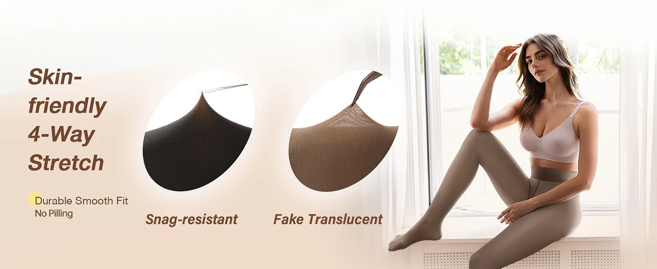 - 🎄Fake Translucent Pantyhose: These translucent fleece leggings are both fashionable and functional. They look sheer from the outside but are lined with warm fleece on the inside. They not only keep you warm during the cold season but also accentuate your figure. Note: this thermal sheer tights are no fleece lined on the feet